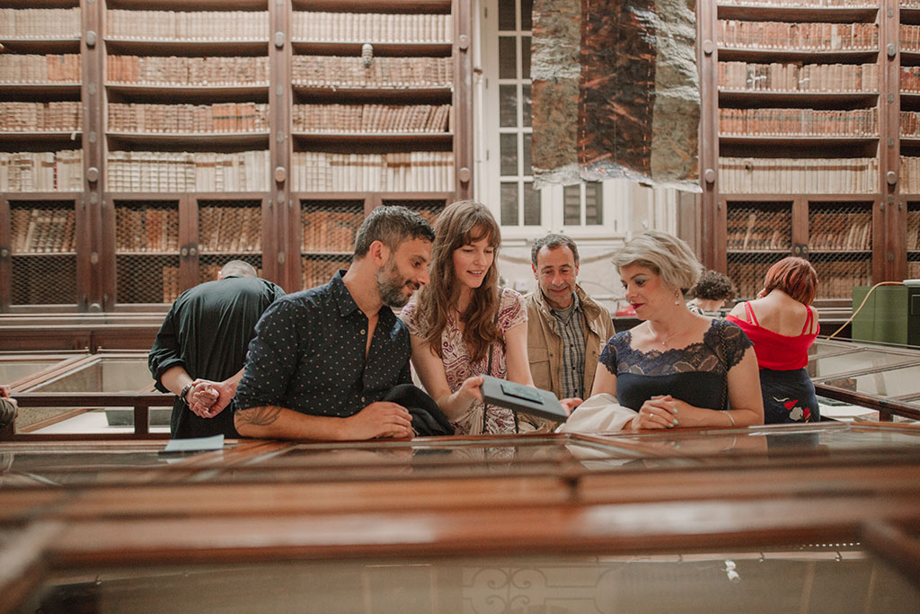 EX LIBRIS opened on May 5, 2018. Close to 200 art lovers attended the opening at the atmospheric Bibliotheca in Valletta, Malta. Metal books, scrolls and other text related works interacted with the beautiful old books of the library.The photo above was taken by the National Library of Malta, who also has this photo album from the event.All the photos below were taken by Therese Debono. The full set of her wonderful photos from that evening can be seen here.