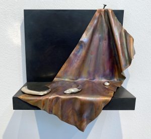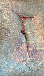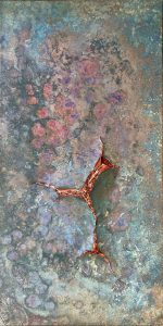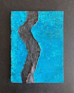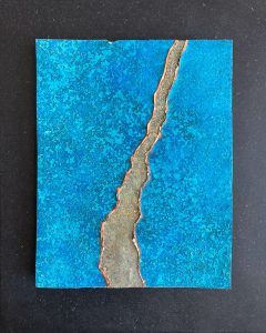 This is YTA [surface], exhibited in my Baldringe studio June 17 – July 2, 2023. I have been exploring surfaces and what happens when they meet… and especially when they break. Captivated by the lure of patinated copper surfaces and the stories that lie beneath them. And the tension between the obvious and the sensed.