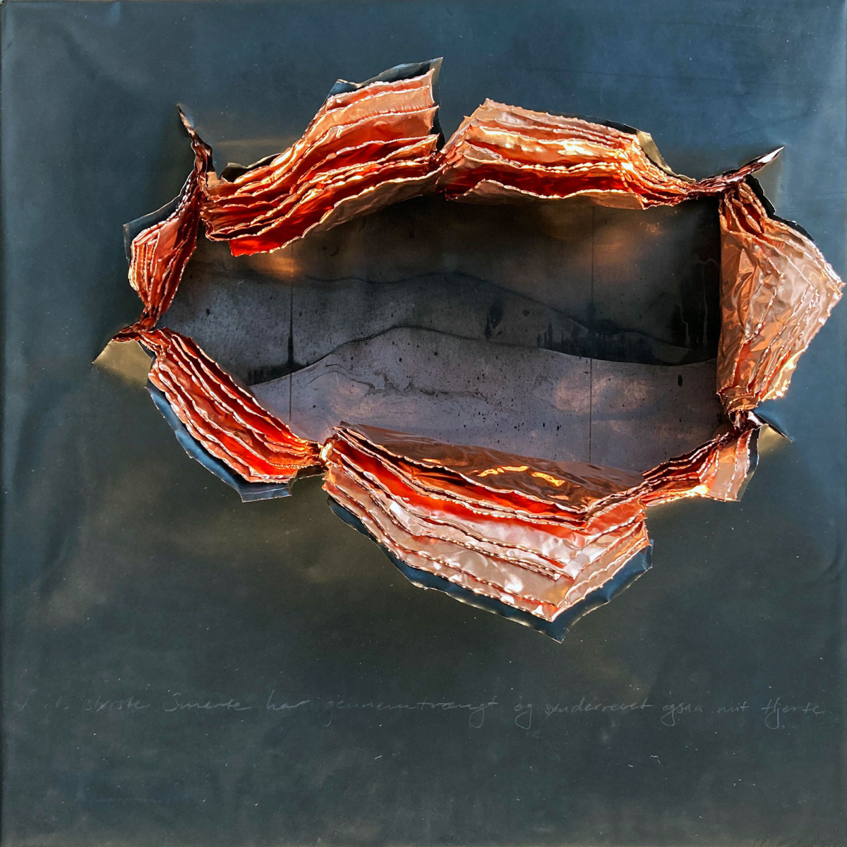 This is YTA [surface], exhibited in my Baldringe studio June 17 – July 2, 2023. I have been exploring surfaces and what happens when they meet… and especially when they break. Captivated by the lure of patinated copper surfaces and the stories that lie beneath them. And the tension between the obvious and the sensed.